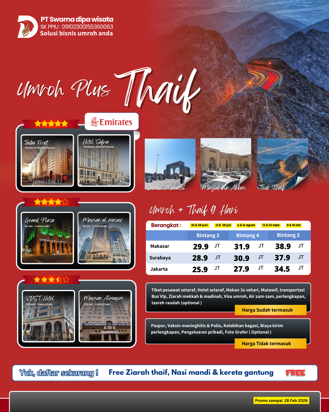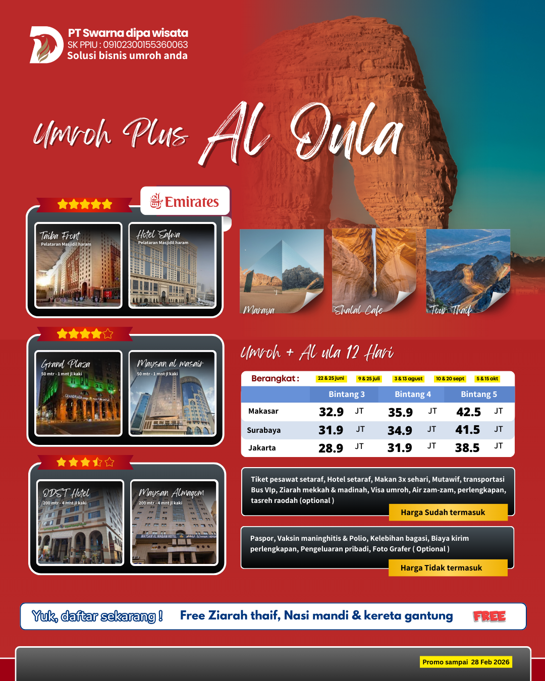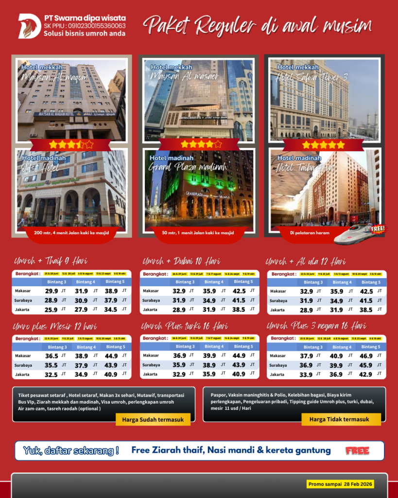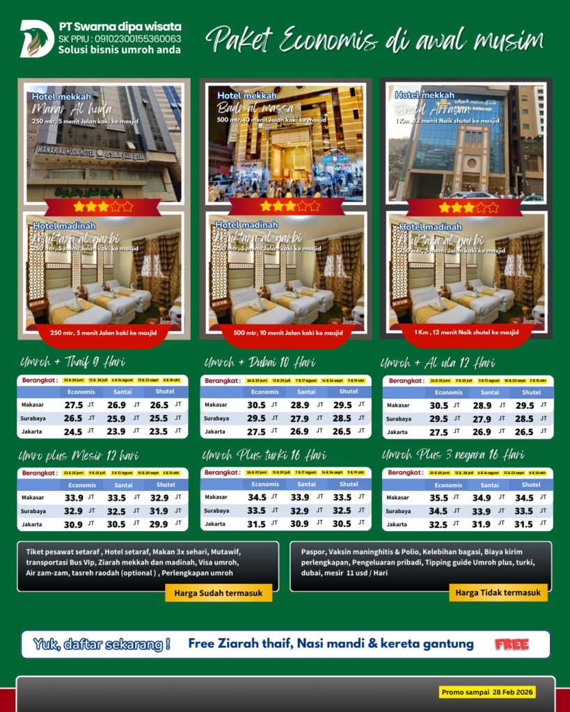 Umroh bareng UMROH BERKAH dengan nyaman dengan harga terbaik yuk daftar sekarang