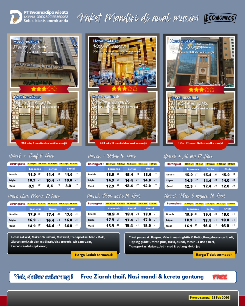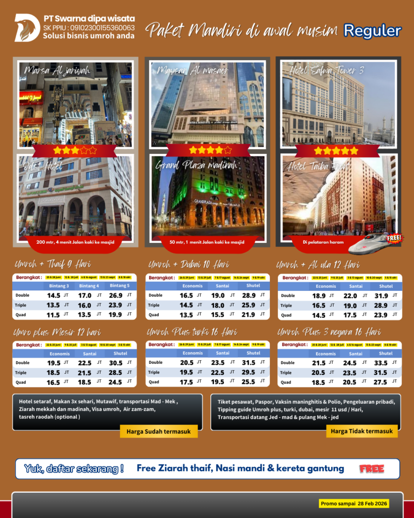 Umroh Mandiri bareng UMROH BERKAH dengan nyaman dengan harga terbaik yuk daftar sekarang
